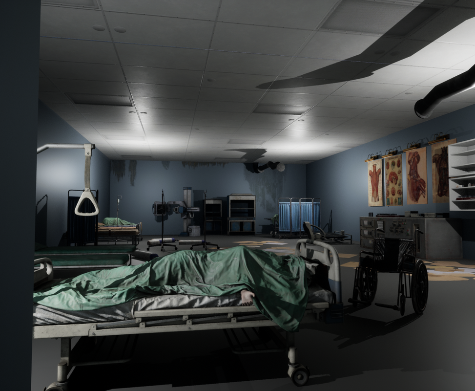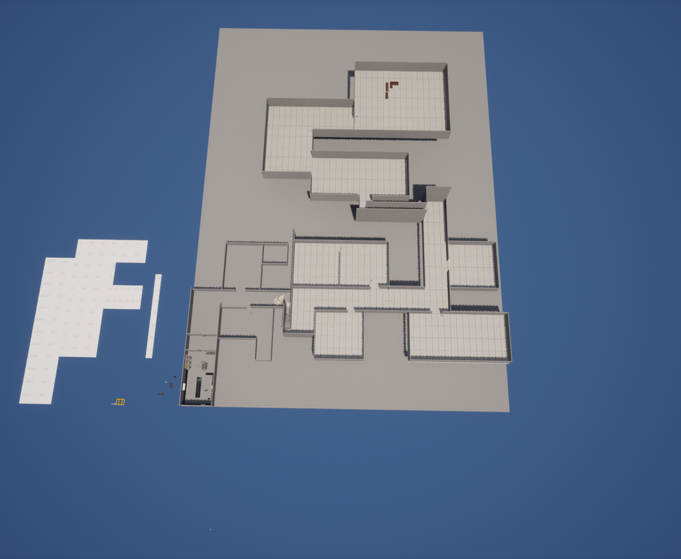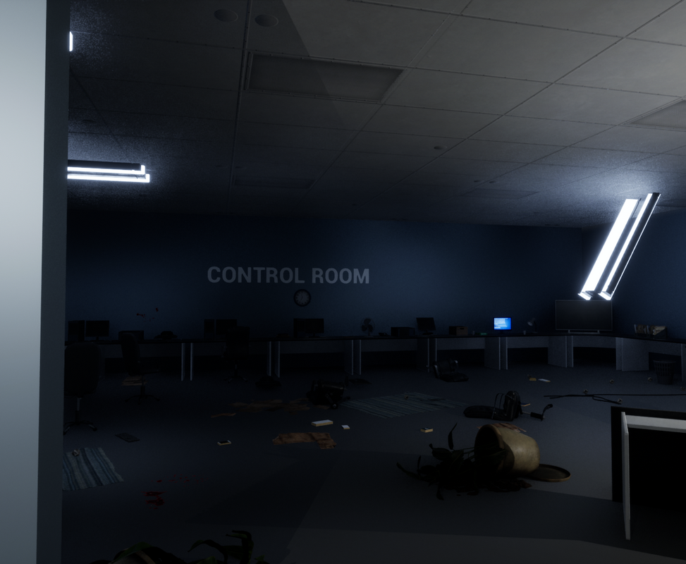 In designing the level, I meticulously organized it into discrete zones, each requiring players to traverse through various rooms while uncovering notes, keys, and clues elucidating the origins of the outbreak. The journey entails navigating through a morgue/ lab, mess hall, CCTV room, and radiation room and ultimately culminates in the Director's office amidst a facility teeming with both deceased and reanimated threats seeking sustenance.
